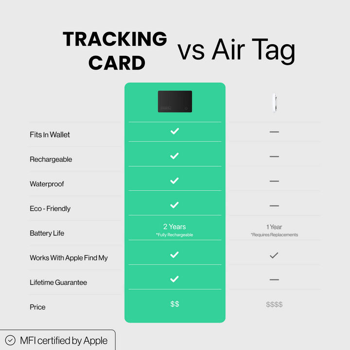 As an officially certified Apple MFi partner, our Tracking Card meets Apple's rigorous quality and security standards. This guarantees: