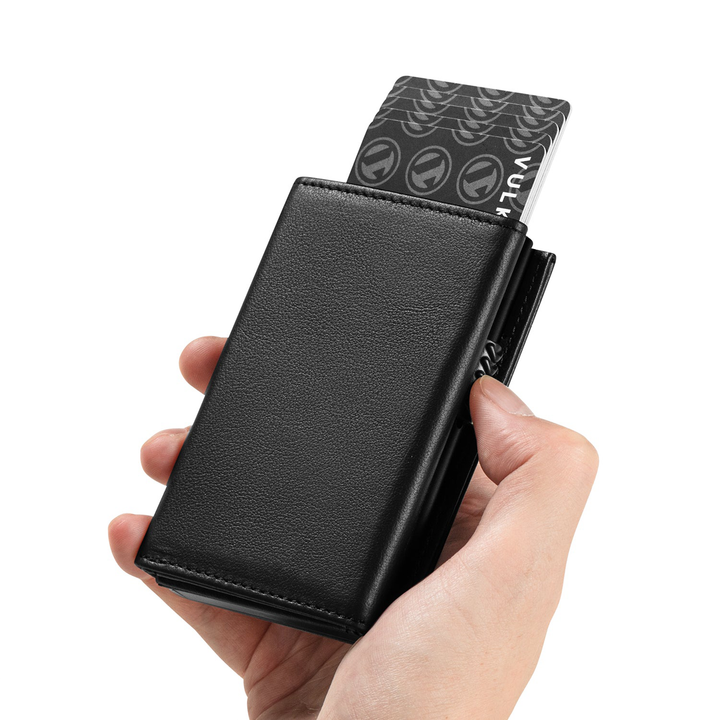 This slim aluminum wallet keeps your cards close and your data even closer. The integrated RFID blocking layer fends off data skimmers.